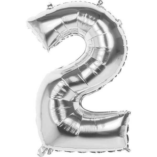 Hopeinen foliopallo, numero 2. Hinta ei sisällä pallon heliumtäyttöä. Koko 86 cm.