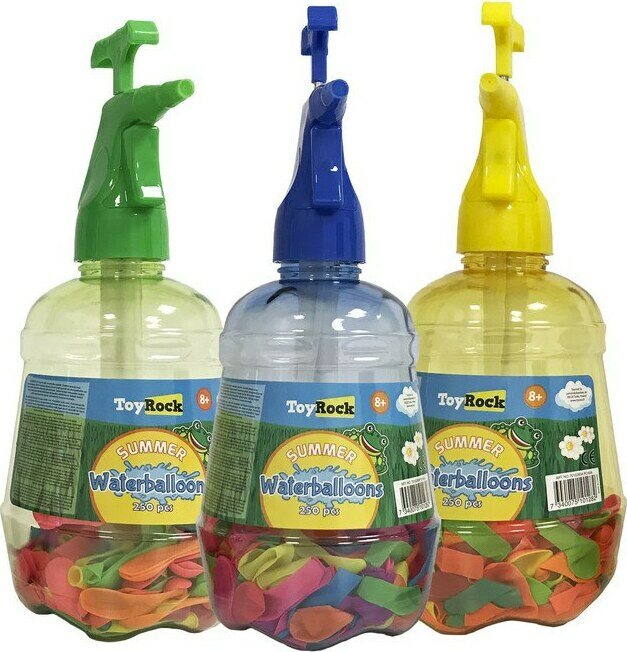 Täytä vesi-ilmapallot helposti ja nopeasti kätevän pumppupullon avulla. Pakkaus sisältää pumppupullon ja 250 vesi-ilmapalloa. Materiaali luonnonkumia. Ikäsuositus yli 8-vuotiaille.