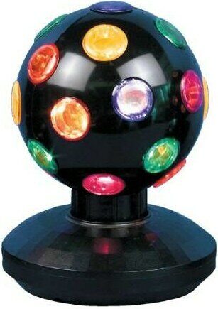 Discopallo sopii asetettavaksi pöydälle tai lattialle. Pallo pyörii ja valot välkkyvät. Tuote toimii verkkovirralla.