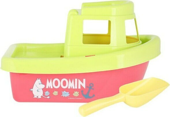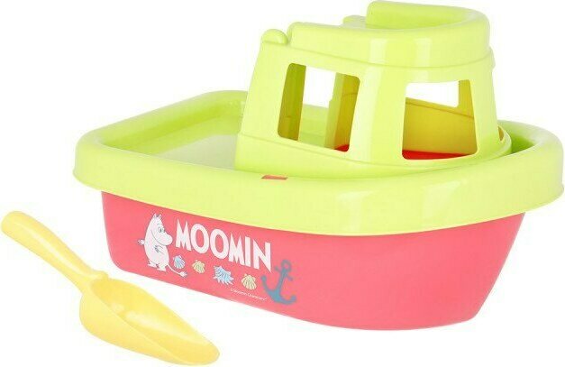 Tuotteen kuvausIson laivan päällisosan saa irrotettua, ja sen sisällä säilyy helposti lapio ja muut hiekkalelut. Laivan leveys on 32 cm ja korkeus 20 cm. Se sopii 2-vuotiaille ja sitä vanhemmille. Laivan kyljessä on Muumipeikon kuva. Laivasta on kaksi eri värivaihtoehtoa.