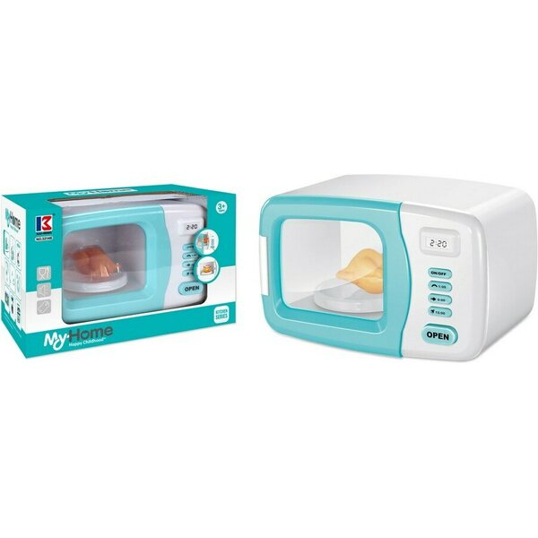 Paristokäyttöinen mikro keittiöleikkeihin. Valolla ja avautuvalla ovella. Paristot 2 x AA (ei sisälly). Ikäsuositus 3+ vuotta. Tuotteen mittatiedot: 25 x 14 x 16 cm – 0,573 kg