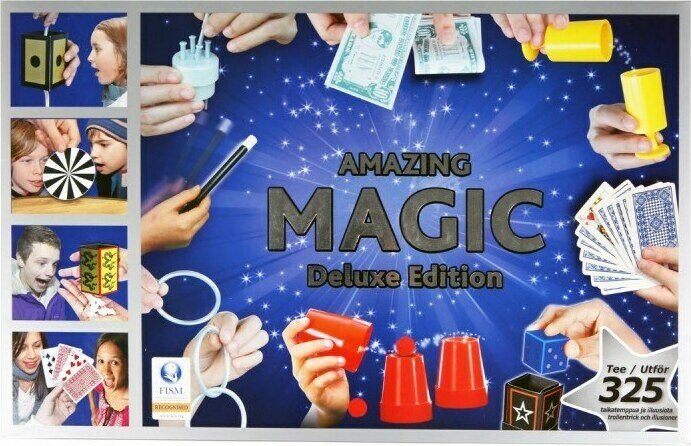 Tuotteen kuvausTaikasetti, joka sisältää apuvälineet sekä yksityiskohtaiset ohjeet jopa 325 erilaiseen taikatemppuun – taikuutta, jonka voi oppia minuuteissa. Temppuina esimerkiksi kolikkojen siirtäminen näkymättömästi kupista toiseen, esineiden kadottaminen ja muuttuminen ja paljon, paljon muuta. Pienille taikureilla ja isommillekin, tästä saa hyvän ohjelmanumeron vaikka lastenkutsuille!