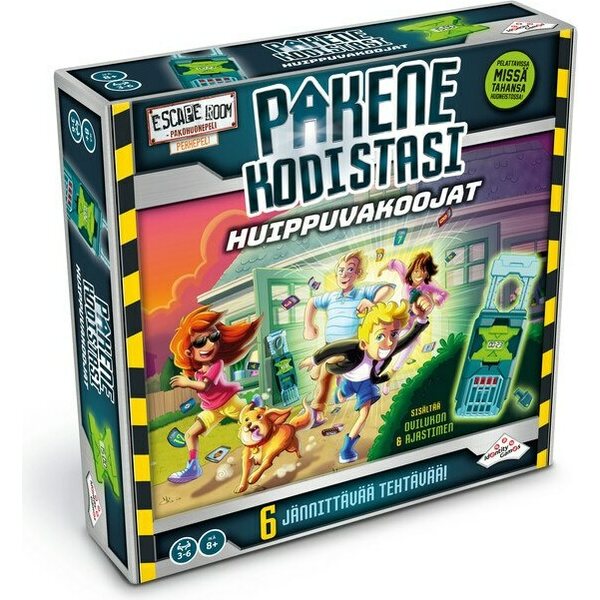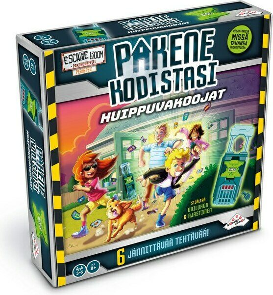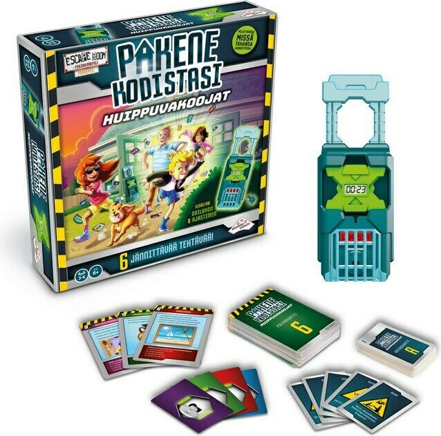 Kodistanne on tullut pakopelihuone! Jokaisessa kuudessa tehtävässä on 15 minuuttia aikaa saada lukko auki ja lopulta paeta talosta ulos! Valitkaa pelialueet, asettakaa tehtävät ja lukot paikoilleen ja peli voi alkaa. Paristot 2 x LR44 eivät sis. 8+