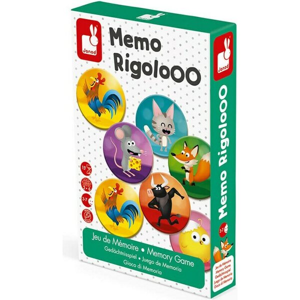 Tuotteen kuvausJanod Muistipelin korteissaon kuvattuna 20 erilaista eläinhahmoa.Eriväriset taustat helpottavat hahmottamisessa ja korttien muistamisessa. Yritä löytää kaksi samanlaista! Muistipeli on todellinen klassikko, jonka pelaamisesta nauttivat niin vanhat kuin nuoret! Pienikin lapsi omaksuu helpot säännöt nopeasti.Muistipeli onoiva ensipelipelattavaksi perheen pienimpien kanssa! Kohta lapset päihittävät vanhempansa mennen tullen!