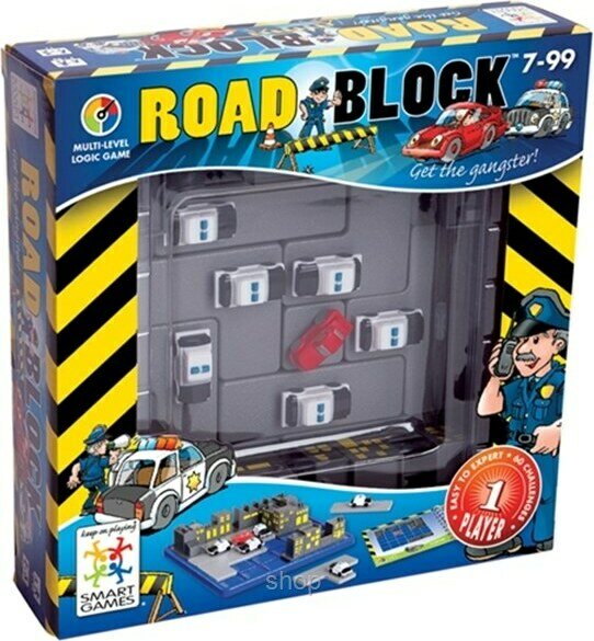 Smart Games Roadblock pelissä takaa-ajo on päällä. Tuki kaikki pakoreitit äläkä päästä autovarasta karkuun! 60 korkeaoktaanista takaa-ajohaastetta. SmartGames RoadBlock eli tiesulku tarjoaa tuntikausiksi hauskoja haasteita. Ajattele loogisesti - pystytkö etukäteen havainnollistamaan kaikki autot omille paikoilleen? Kuten poliisien takaa-ajot elokuvissa - mutta vieläkin parempaa!