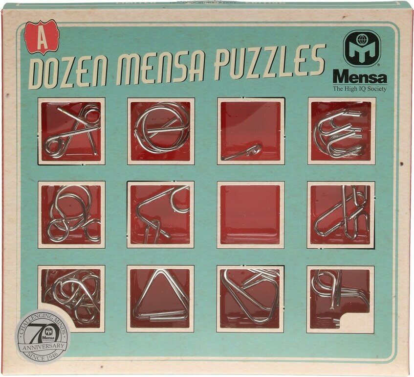 Mensan vaikeusluokituksen mukaiset klassiset pulmapelit (vaikea, vaikeampi ja vaikein). Tyypeille, jotka nauttivat aivojumpasta ja loogisen ajattelukykynsä rajojen testaamisesta. Taskukokoinen ja haastava! Sisältää 12 metallista pulmapeliä ja ohjeet FI-SV-EN-ET-LV-LT. Mukana lisäksi bonuskysymyksiä vain englanniksi.