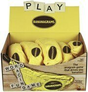 Tuotteen kuvausSanapelien parhaimmistoa! Bananagramsissa kaikki pelaajat tekevät omaa sanaristikkoa samanaikaisesti, eikä omaa vuoroa tarvitse odottaa. Ensin jokainen pelaaja ottaa määrätyn määrän kirjainnappuloita, jonka jälkeen kaikki pelaajat saavat kääntää kirjaimet oikein päin ja ryhtyä yhtä aikaa muodostamaan sanoja: pystyyn, vaakaan – ristikkäin. Kun ensimmäinen pelaaja saa käytettyä kaikki kirjaimet, jokainen pelaaja ottaa yhden uuden kirjainlaatan lisää. Peliä jatketaan niin kauan kunnes kaikki kirjaimet on loppu, ja joku pelaajista on saanut käytettyä kaikki omat kirjaimensa sanaristikkoonsa, hyväksyttävästi. Pelaajilla on myös oikeus milloin tahansa pelin aikana laittaa yksi oma kirjain takaisin pöytään ja ottaa samalla kolme uutta kirjainta itselleen. Peliin tarvitaan vain 144 kirjainlaattaa, ei kynää, paperia tai pelilautaa. Peli tulee hauskassa vetoketjullisessa banaanin muotoisessa pussukassa. Yksinkertaista, koukuttavaa ja vauhdikkaan hauskaa!