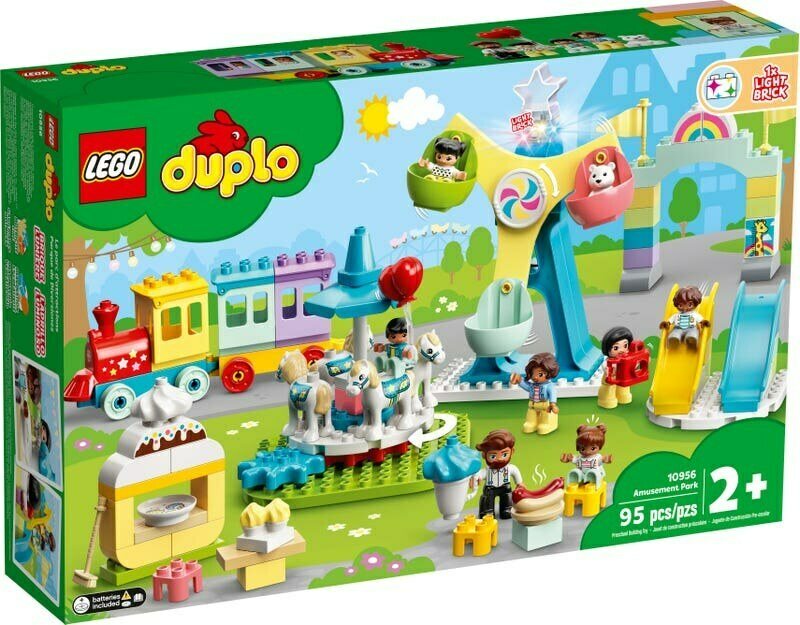 LEGO® DUPLO® Kaupunki Huvipuisto (10956) on tulvillaan upeaa nähtävää, erilaisia toimintoja ja koko perheen huvia. Setti innostaa, kiehtoo ja viihdyttää lapsia ja tukee heidän kehitystään.