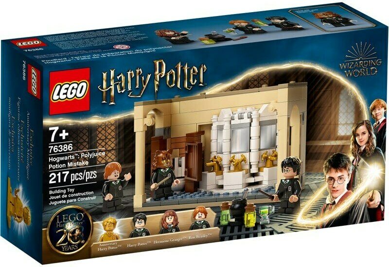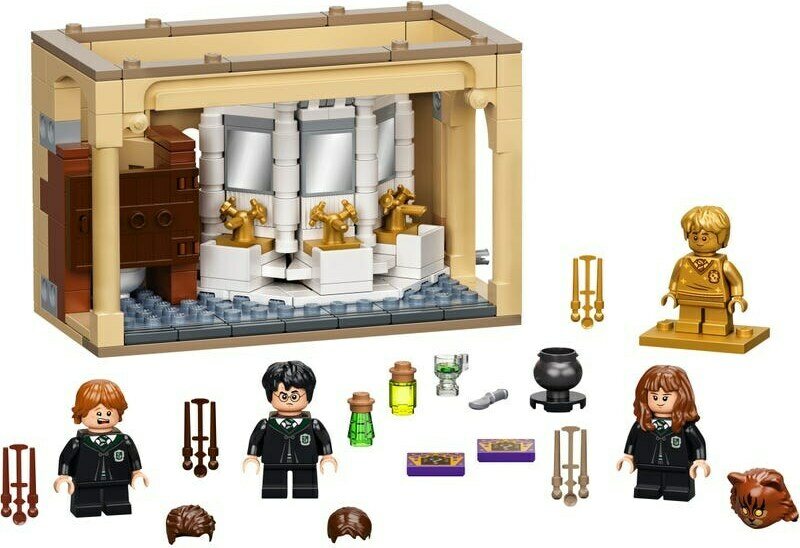Nuoret noidat ja velhot voivat liittyä Harry Potterin, Ron Weasleyn™ ja Hermione Grangerin™ seuraan valmistamaan tehokasta monijuomalientä. Sen juominen muuttaa hahmot Vincent Crabbeksi ja Gregory Goyleksi. Näiden minihahmojen kasvot saa näkyviin kääntämällä hahmon pään ja vaihtamalla sen hiukset. Taika voi kuitenkin mennä pieleen, kuten silloin, kun Hermione muuttuu kissaksi! Luvassa on muitakin yllätyksiä: harvinainen kultainen juhlavuoden Harry Potter -minihahmo, 2 keräiltävää velhokortti-yllätyslaattaa ja salainen tunneli pesualtaan alapuolella. Kun tämän setin yhdistää LEGO Harry Potter Tylypahkan salaisuuksien kammioon (76389), salainen tunneli yhdistyy 2 huoneeseen, ja leikit yltyvät. Maagisen moduulijärjestelmän ansiosta lapset voivat lisätä huoneita ja rakentaa koko Tylypahkan linnaa esittävän mallin.