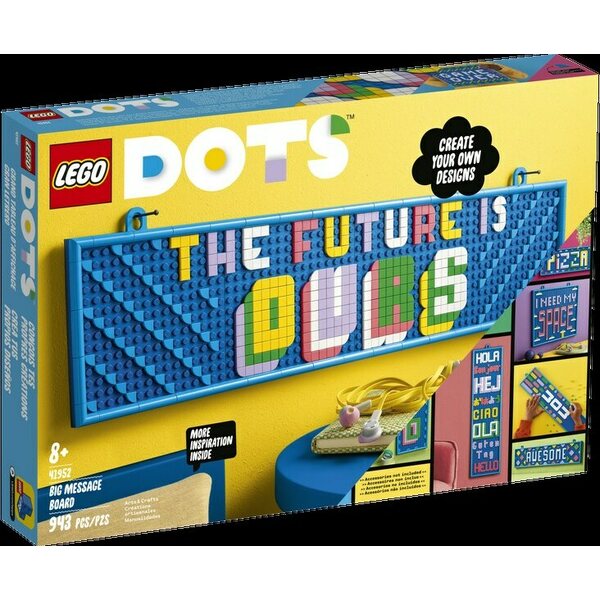 Näytä viesti tai kuvio muillekin – Kun viestitaulun muokkaukseen ottaa mukaan setin 41950 DOTS-suurpakkaus – kokoa kirjaimia (myydään erikseen) tai jonkin muun LEGO® setin, lasten suunnittelutaidot pääsevät vieläkin paremmin esiin
