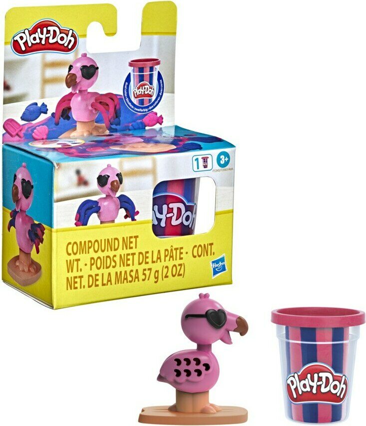Lajitelmassa kaksi erilaista: auringonottaja Corgi ja suffaava flamingo. Sisältö: hahmo, purkki kaksiväristä muovailuvahaa ja painin. Ikäsuositus 3+.