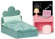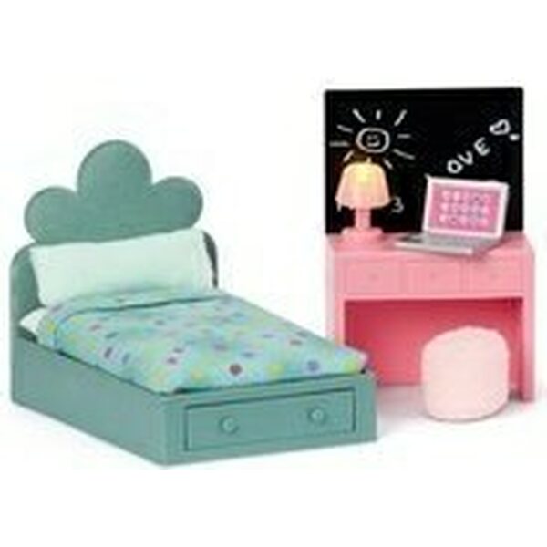 Tuotteen kuvausTyylikäs sänky, jakkara ja kirjoituspöytä Lundby-perheen teineille. Pöydällä on tietokone, jolla voi pelata tai viestitellä kavereiden kanssa. Hämärän tullen voit sytyttää paristokäyttöisen lampun valaisemaan nukkekotia. Lamppu sammuu automaattisesti 15 minuutin kuluttua. Sängyssä on sängynpääty, ulosvedettävä säilytyslaatikko ja pehmeä peitto. Teini voi näin nauttia aamuista, jolloin saa nukkua pitkään. Settiin kuuluvat myös pehmeä jakkara ja liitutaulu. Toimitukseen sisältyy 1 paristo (CR2032).