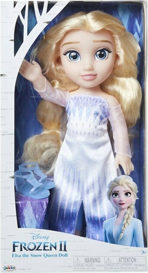 Frozen 2 Lumikuningatar Elsa. Pitkät ja kauniit vaaleat hiukset. Paketissa Elsalla mekko ja kengät. Koko 38 cm. Ikäsuositus 3+.