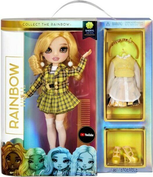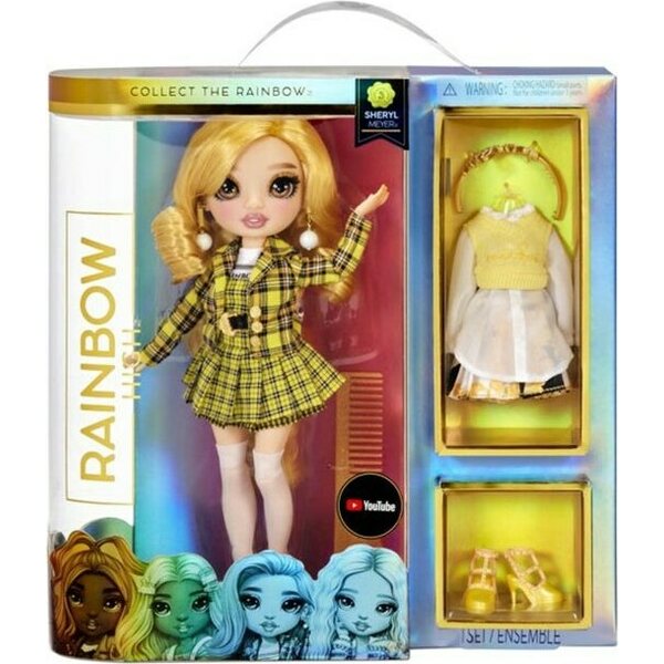Iso rainbow high nukke jolla on lasisilmät ja ripset. Pakkauksessa on kaksi asusettiä. Ikäsuositus +5