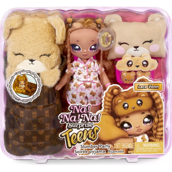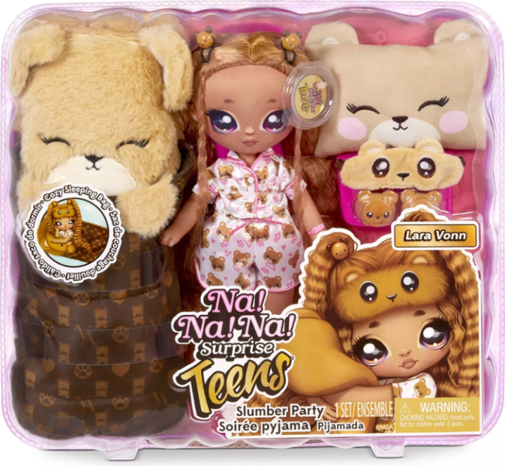 Suloinen Na!Na!Na! nukke Lara Vonn. Nukke on pehmeä, ja hänellä on mukanaan superpörröinen nallemakuupussi, unimaski, hiusharja, tyyny ja pienet nalletöppöset. Nuken korkeus 28cm Ikäsuositus 4+