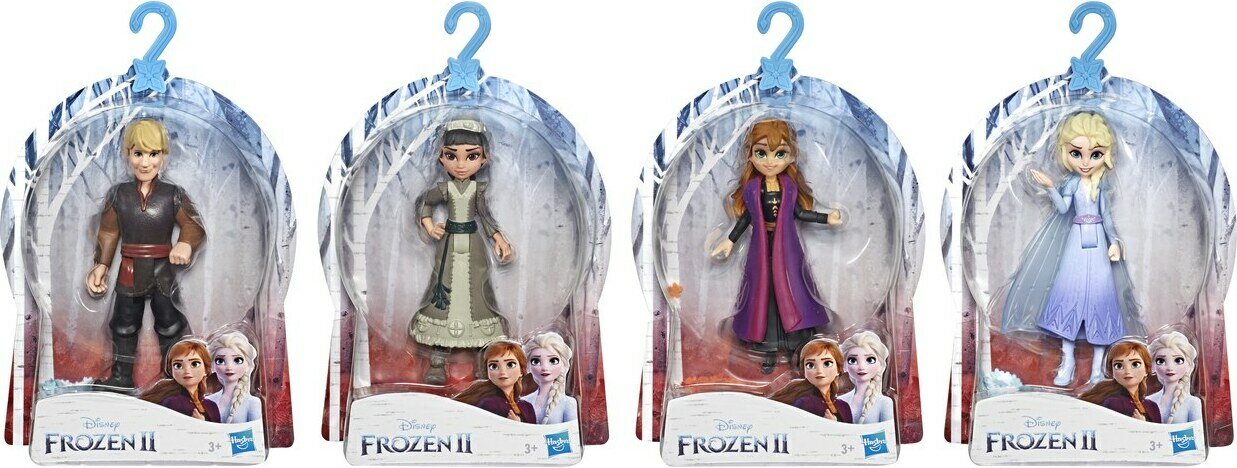 Frozen 2 -elokuvan innoittamat pikkunuket. Hahmot myydään erikseen. Ikäsuositus 3+. 2x Elsa, 2x Anna, 1x Kristoff, 1 x Honey Maren Ikäsuositus 3+.