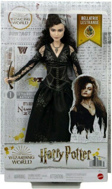 Harry Potterista tuttu, Voldemortille omistautunut velho, Bellatrix Lestrange -keräilynukke. Velholla on mukaan oma taikasauvansa. Nukella on 11 liikuteltavaa niveltä ja sen koko on 25 cm. Ikäsuositus yli 6-vuotiaille.