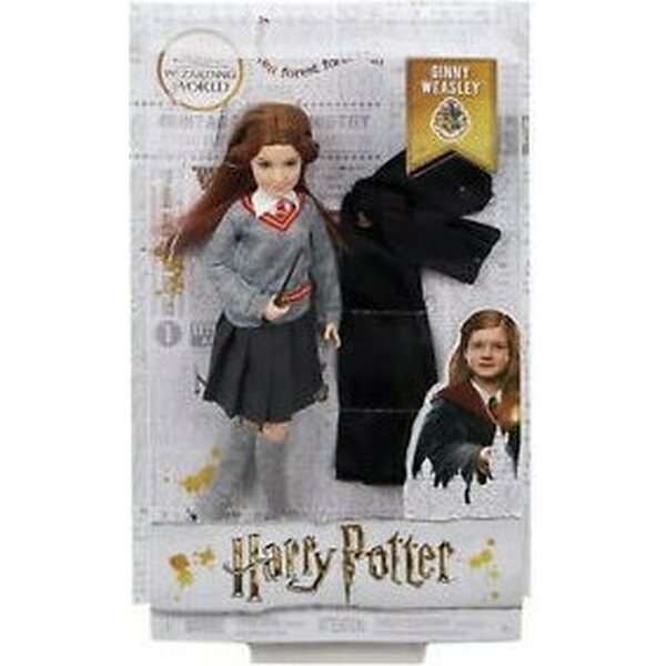 Harry Potter Ginny Weasley muotinukke. Hahmolla on liikkuvat nivelet ja mukanaan oma taikasauva. Ikäsuositus 4+