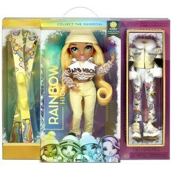 Rainbow High Winter Break Sunny Madison muotinukke. Nukella talviset vaatteet ja laskettelusukset. Sisältää myös kaksi eri asua. Ikäsuositus 5+.