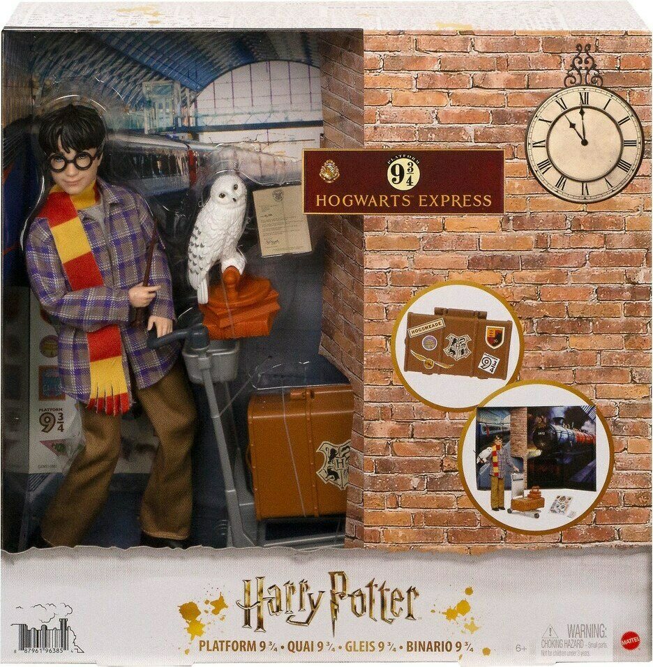 Paketissa mukana Harry- nukke (n.25 cm), Hedwig-pöllö, matkalaukku ja kärry sekä muita tarvikkeita. Ikäsuositus: 6+ vuotta