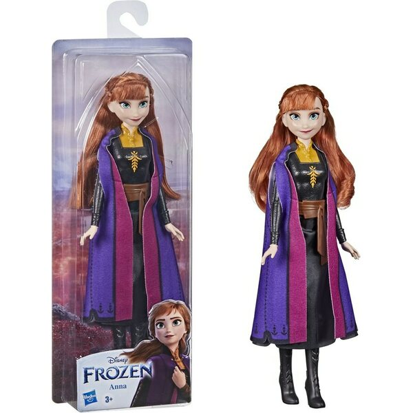 Disney Frozen 2 -elokuvan inspiroima Anna-nukke matka-asussaan. Annalla on pitkät punaiset hiukset, mekko viitalla ja irrotettavat kengät. Nukella on viisi nivelpistettä.