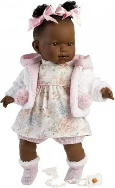 LLORENS NICOLE Llorens Nicole on pehmeävartaloinen nukke mustilla hiuksilla. Nuken mukana tulee vaaleanpunaiset vaatteet sekä tutti. Llorens nuket ovat espanjalaista käsityötä. Koko 42 cm. Ikäsuositus 3+ vuotta.