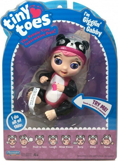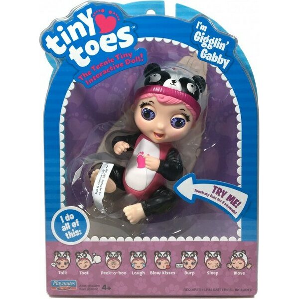 Hurjan söpö interaktiivinen Tiny toes vauva reagoi kosketukseesi erilaisilla äänillä ja eleillä. Kun kosketat vauvan jalkapohjaa se esimerkiksi juttelee, nauraa, lähettää suukkoja ja räpyttää silmiään.Nuken korkeus 11cm. Ikäsuositus 4+