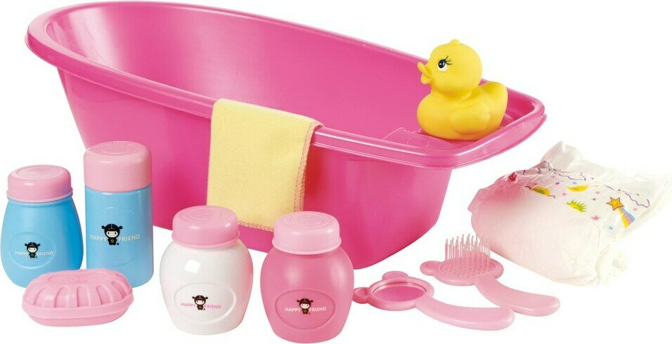 Suloinen kylypysetti vauvanukelle. Pakkaus sisältää kylpyammeen, kylpylelun, pesulapun, vaipan sekä muita tarvikkeita. Ikäsuositus 3+
