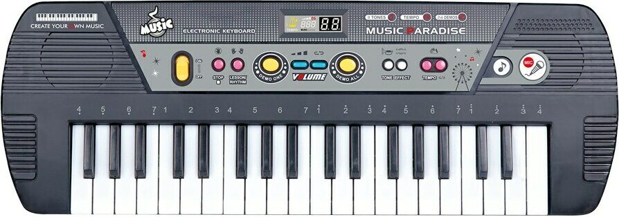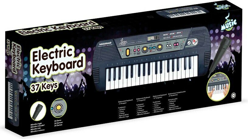 Kosketinsoitin, jossa 24 demokappaletta ja erilaisia rytmejä ja äänitehosteita. Sisältää mikrofonin. Soittimessa 37 kosketinta. Paristot eivät sisälly pakkaukseen.
