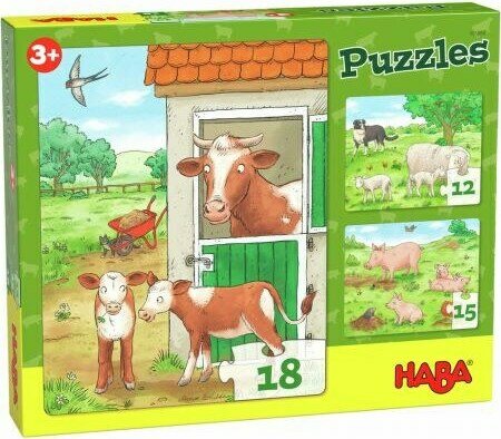 Kätevä palapelipakkaus, joka sisältää 3 erilaista eläinaihetta (12, 15 ja 18 palaa). Materiaali tukeva kartonki. Paketin koko 29x5x24 cm. Ikäsuositus: 3+.