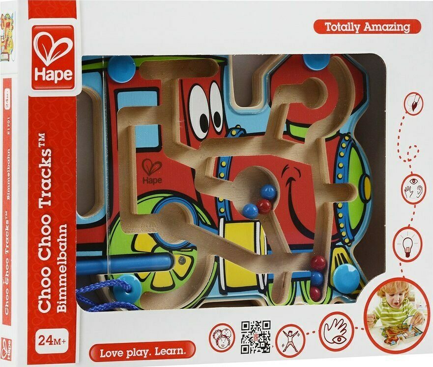 Hauska pujottelupeli. Magneettisen kynän avulla kuulia voi liikuttaa junalabyrintissa. Alustan päällä on kirkas muovilevy, jonka läpi kuulia siirrellään. Magneettinen kynä on narulla kiinni alustassa eikä pelissä ole irrallisia osia.