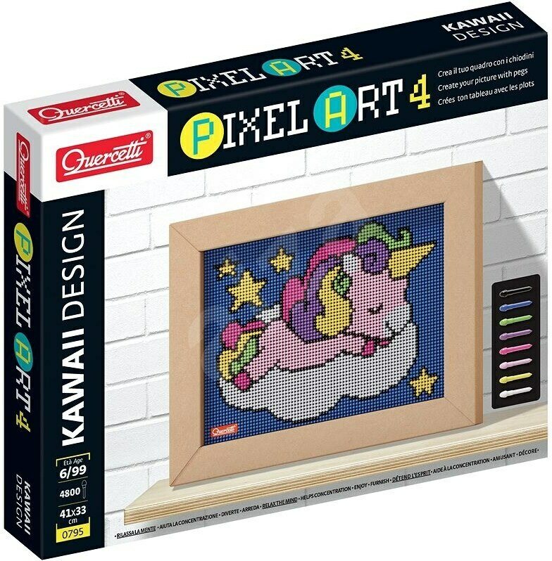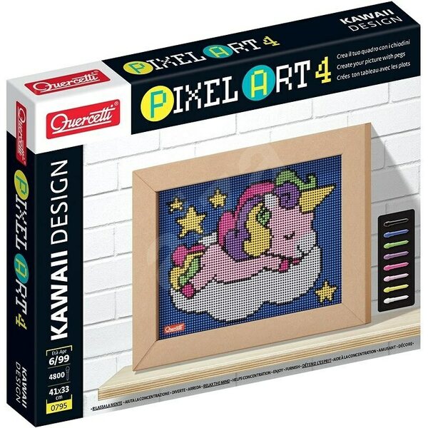 QUERCETTI YKSISARVINEN PIKSELITAULU Tässä paketissa on kaikki jota tarvitset tehdäksesi mahtavan yksisarvis mosaakkityön,4800 eriväristä tappia, alusta, kehykset ja muovinen painamis kynä! Paina tapit alustaan niille kuuluville paikoille ja katso kuinka mosaiikki etenee pikku hiljaa. Laita valmis mosaiikki kehyksiin ja roikkumaan huoneesi seinään. Mosaiikin tekeminen kehittää kädentaitoja sekä silmien ja käden koodinaatiokykyä.