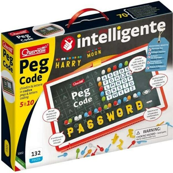 Nuppeja ja salakirjoitusta.Peg Code -peli perustuu Polybiuksen neliöön, jossa on 5 rivin ja 5 sarakkeen ruudukko. Aakkosten kirjaimet asetetaan