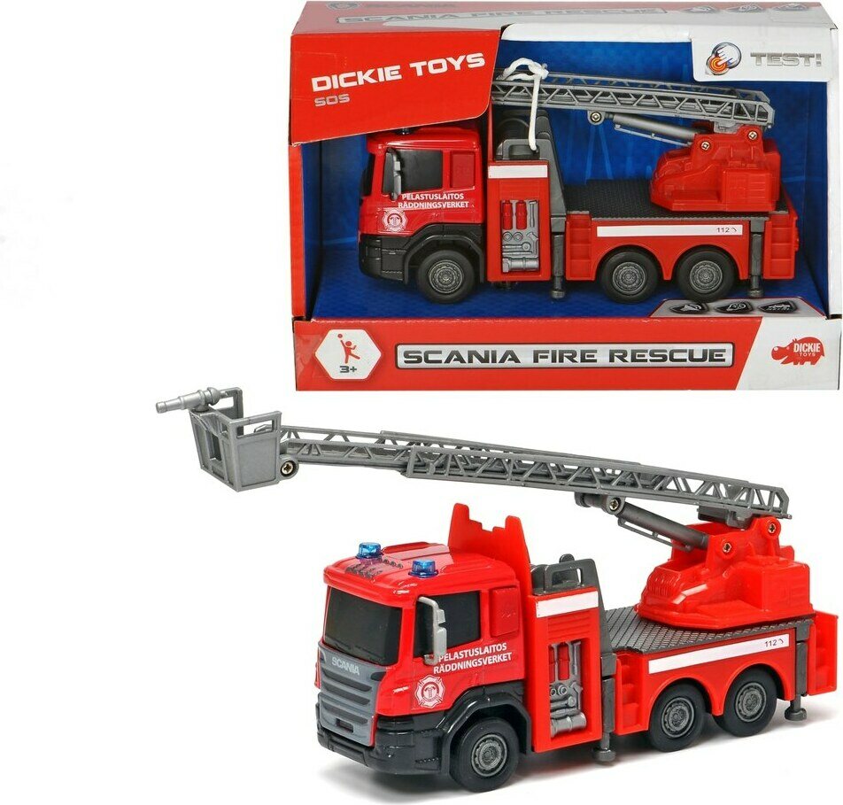 Dickie Toys paloauto äänillä ja vilkkuvilla valoilla. Ikäsuositus yli 3- vuotiaille. Paristot: 3x LR41 (testiparistot mukana)