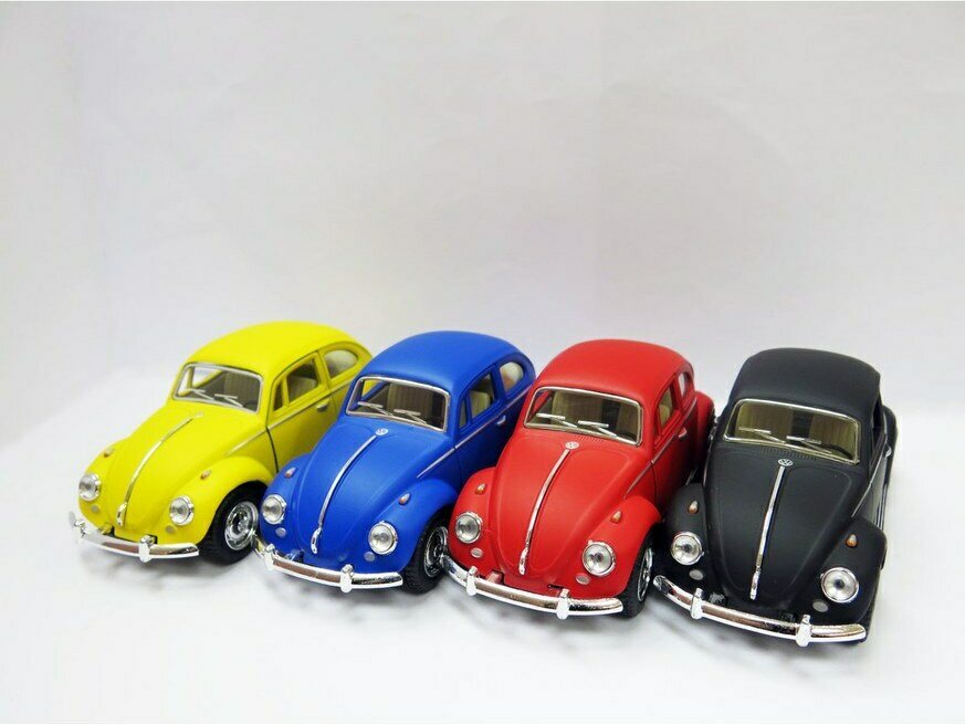 Klassikko – metallinen 1967 Volkswagen kupla. Hienot mattavärit, kulkee pull back -mekanismilla. Kokosuhde 1:32. Merkki: Kinsmart. Tuotteen mittatiedot: 13 x 5 x 5 cm – 0,1 kg.