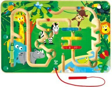 Hape viidakkopujottelu kehittää lapsen motorisia taitoja, ja harjoittaa käden ja silmän yhteistyötä. Hauskassa viidakkoseikkailussa kuljetetaan kuulaa magneettikynällä pleksin läpi. Matkalla on mutkia ja esteitä, jotka tulee selvittää. Ikäsuositus 2+