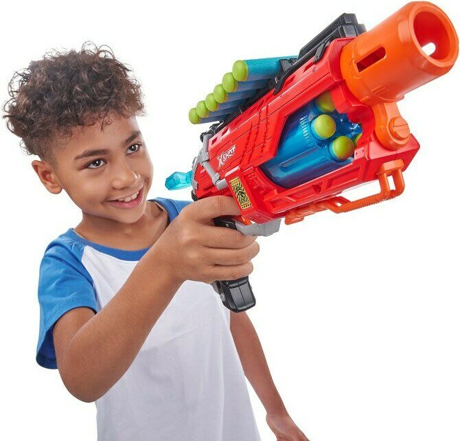 Hurjat dinosaurukset ovat vallanneet maan. Ota käteesi D-Hunter -ase, tähtää ja estä dinopopulaation kasvu tuhoamalla dinojen munat. Pakkaus sisältää aseen, neljä dinomunaa ja 16 vaahtomuoviammusta. Ikäsuositus yli 8-vuotiaille.