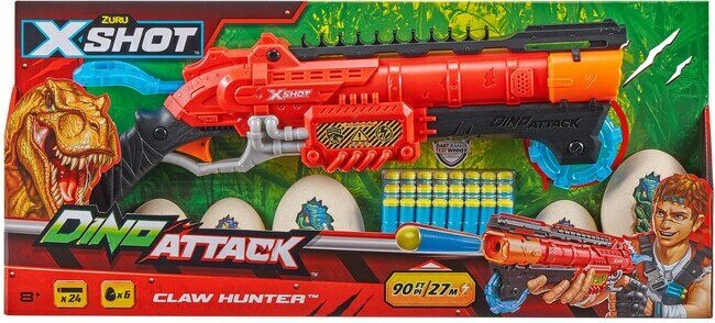 Hurjat dinosaurukset ovat vallanneet maan. Ota käteesi D-Eliminator -ase, tähtää ja estä dinopopulaation kasvu tuhoamalla dinojen munat. Pakkaus sisältää aseen, kuusi dinomunaa ja 24 vaahtomuoviammusta. Ikäsuositus yli 8-vuotiaille.