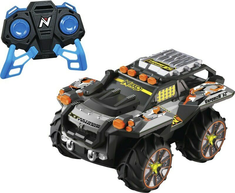 Vahvaa nelivetoista suoritusta maalla, vedessä ja lumessa! Huippunopeus 15km/h. Ohjainkantama sisällä ja ulkona 40 metriä, vedessä 30 metriä. Auton koko 30 cm. Kokosuhde 1:12.