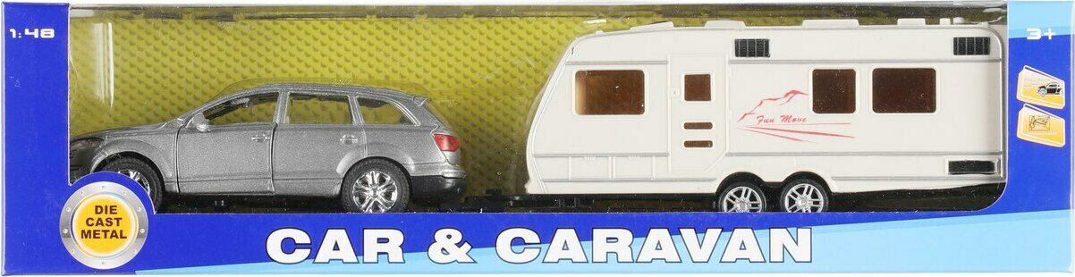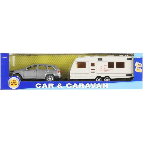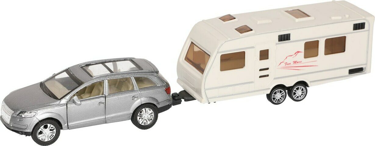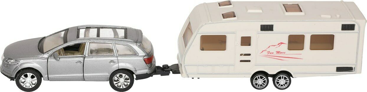 Sisältää auton ja asuntovaunun. Pull back-toiminto. Ikäsuositus 3+.