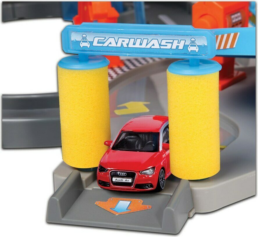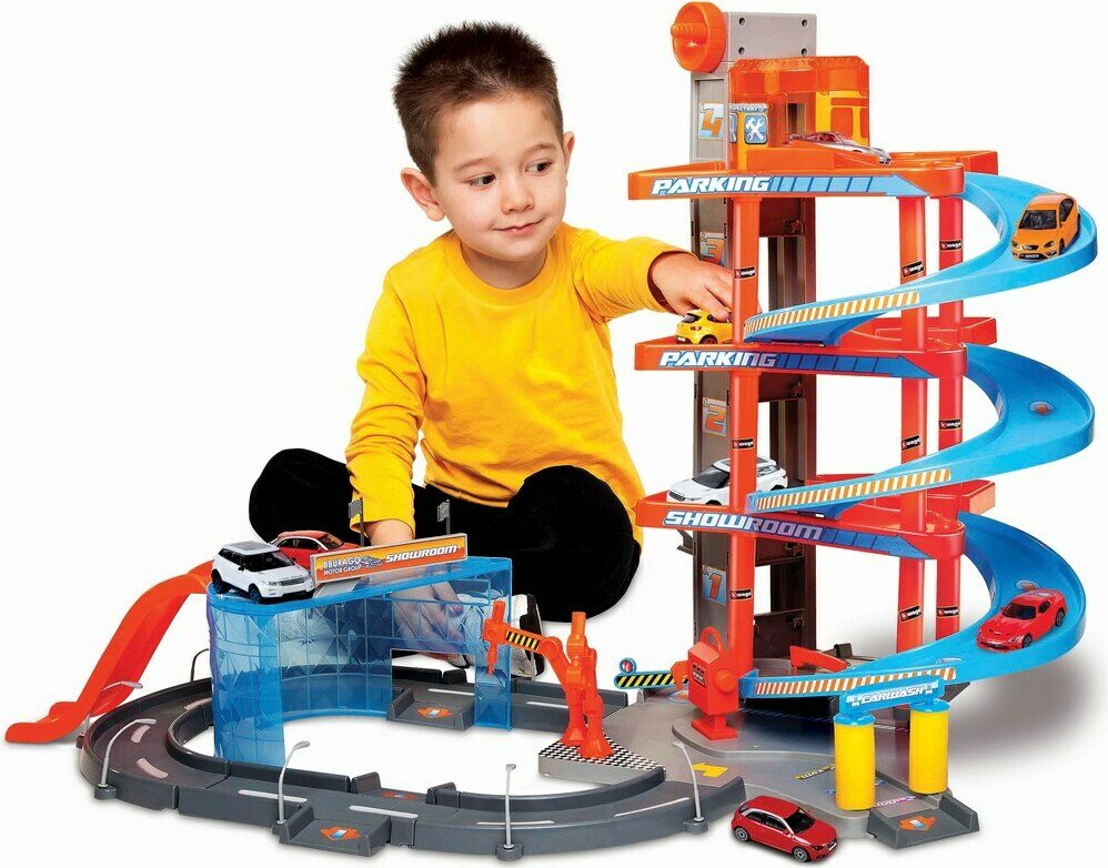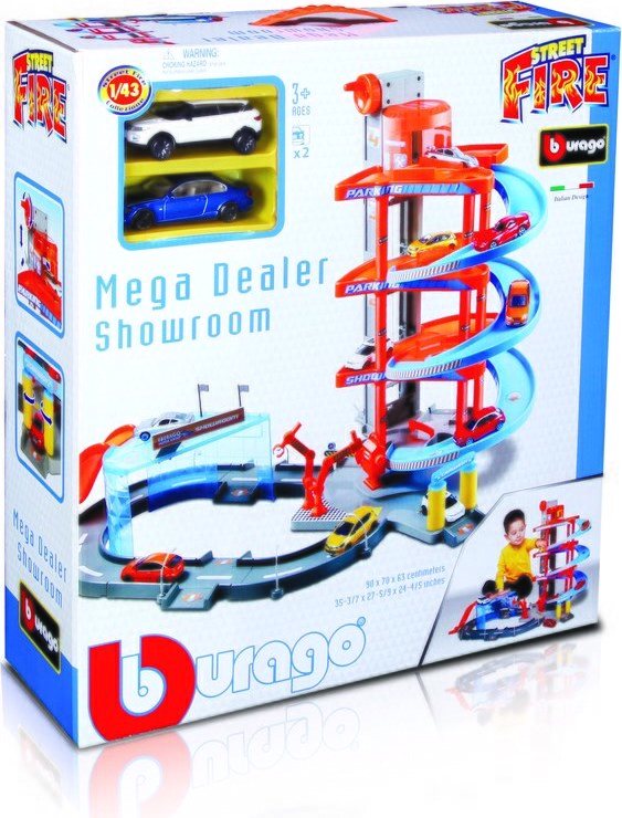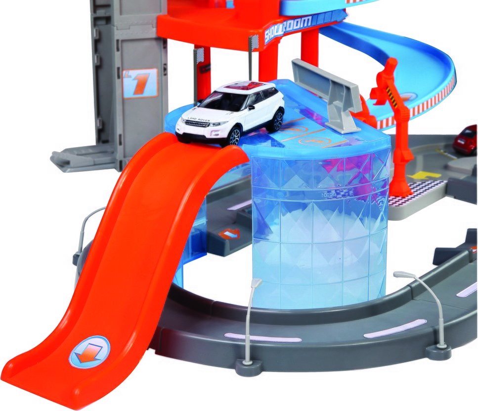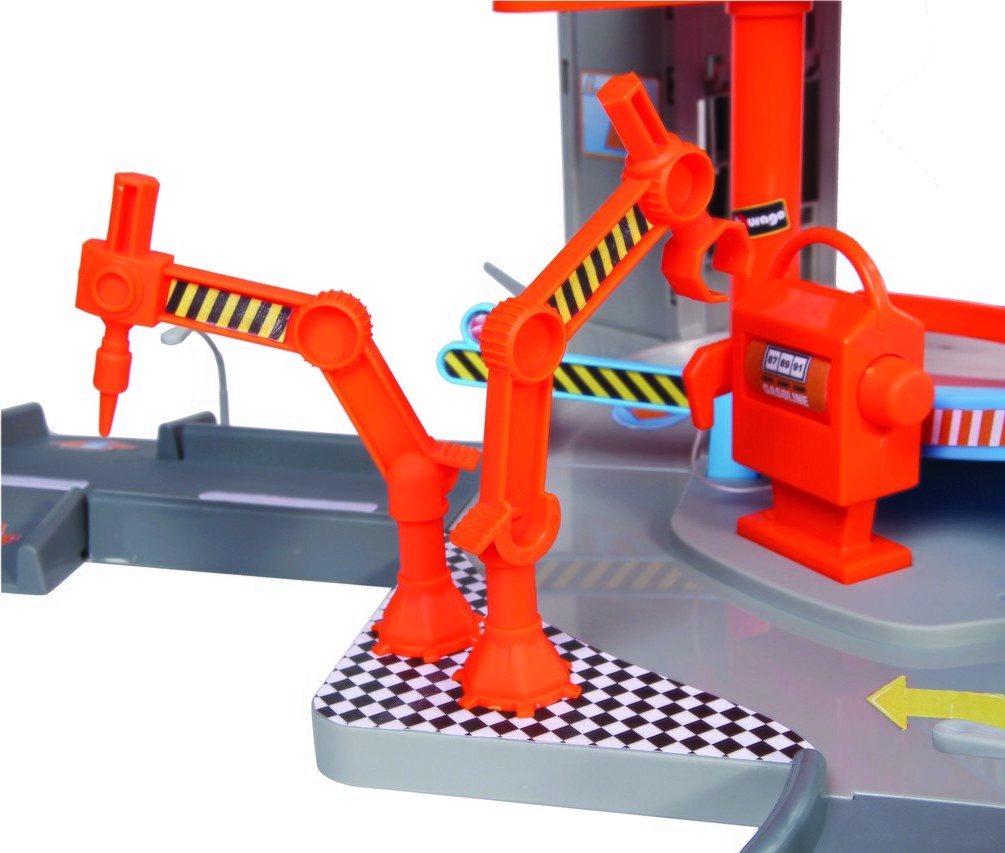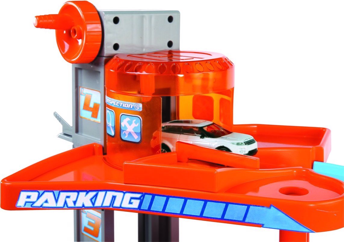 Kootun tuotteen mitat 90 x 70 x 63 cm. Suuri parkkitalo manuaalisella hissillä ja monilla eri toiminnoilla. Pakkauksessa mukana 2 kpl 1:43 koon metallista pikkuautoa. Ikäsuositus 3+.