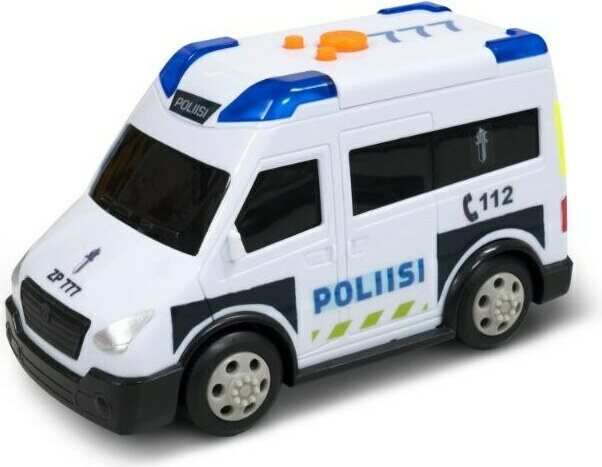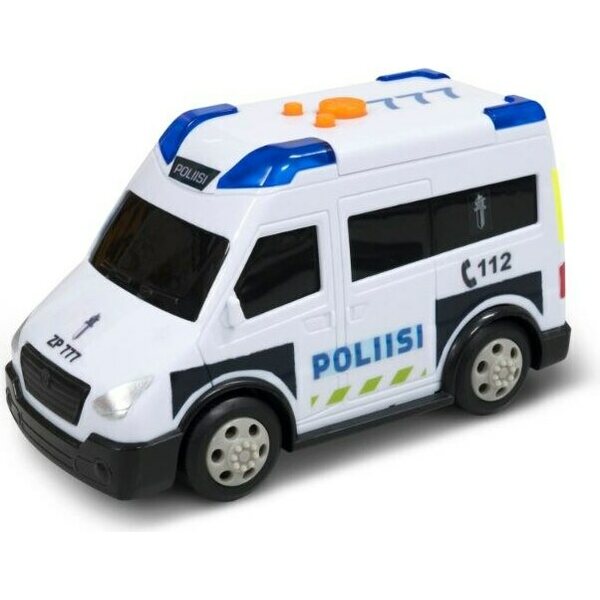 ROAD RIPPERS POLIISIAUTO Noin 13cm vapaapyöräinen suomalainen poliisiauto. Valo- ja äänitoiminnot. Ikäsuositus 3+ vuotta.