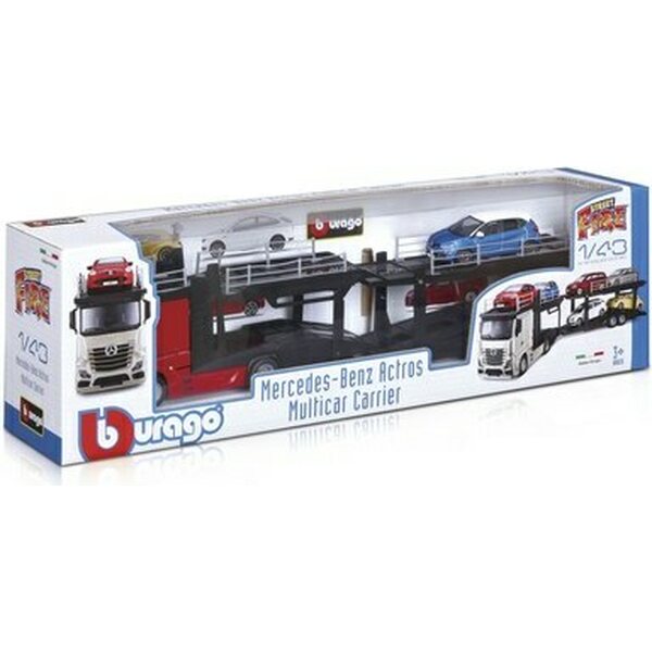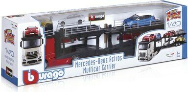 Pakkaus 11 x 51,5 x 15 cm. 1/43 koon autonkuljetusrekka, kyydissä yksi pikkuauto. Valumetalli muovisilla yksityiskohdilla. Ikäsuositus 3+.