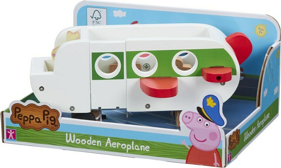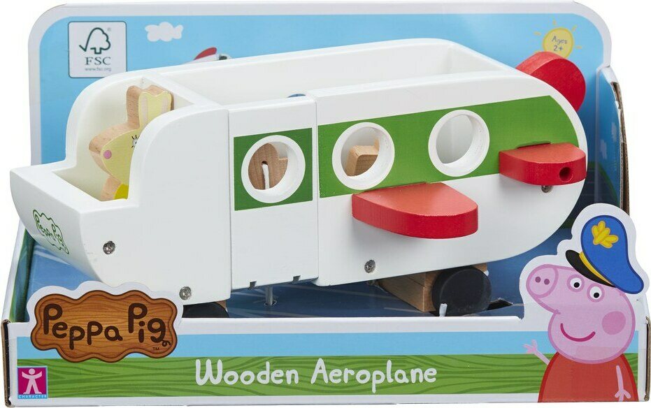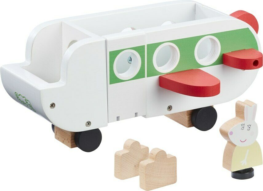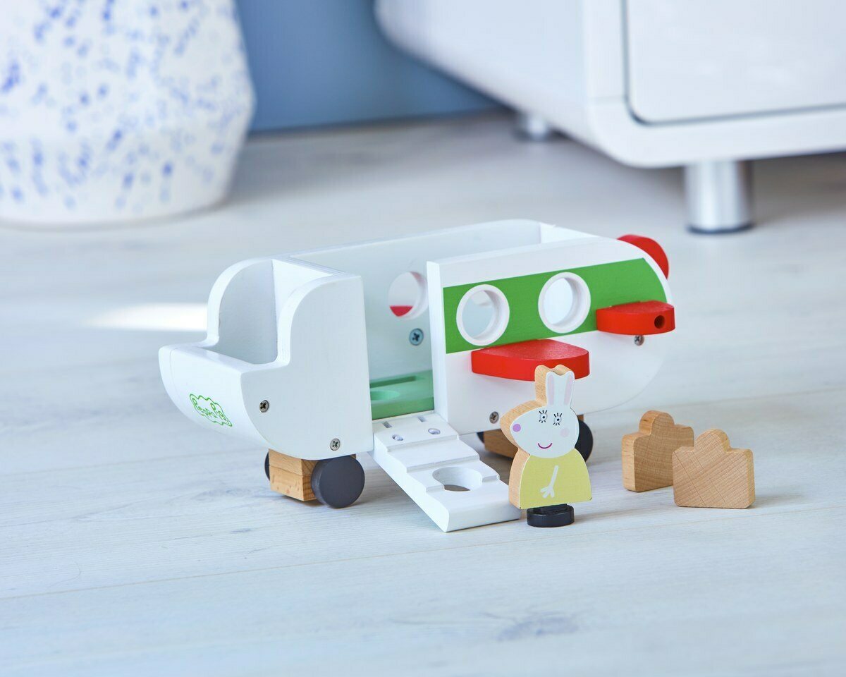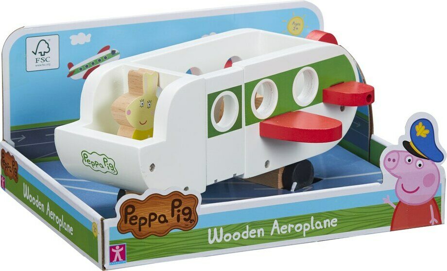 Ole valmis nousemaan lentoon Pipsa Possun puisella lentokoneella. Täydellinen pienille käsille, helppo tarttua ja pyörät pyörivät pehmeästi. Pipsa-fanit voivat työntää lattialla tukevaa ja kestävää lentokonetta ja lentää ylös taivaalle. Avoimia rappuja pitkin Pipsa Possun puiset hahmot voivat helposti nousta koneeseen ja ottaa mukaansa 2 matkalaukkua. Sisältää myös 1 puisen Neiti Jäniksen, ja ‘drop n play’ -jaloilla se voidaan helposti pudottaa mihin tahansa 4:ään paikkaan käsi- ja silmäkoordinaation parantamiseksi.