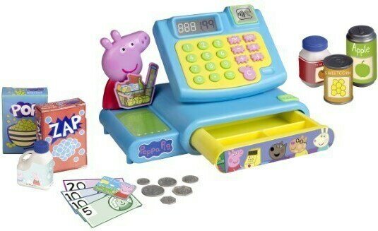 Pipsa Possu teemaisessa kassakoneessa on tuotteita skannaava viivakoodinlukija, laskin, pankkikortinlukija ja piiip -äänitoiminto. Pakkauksen mukana tulee kolikoita, seteleitä ja ostoksia. Kassakoneen väri on sininen/keltainen.
