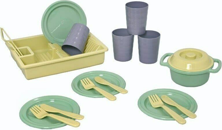 Biomuovista valmistettu Plaston ruoka-astiasto neljälle. Sisältää 19 osaa. Valmistettu Suomessa