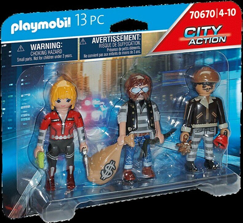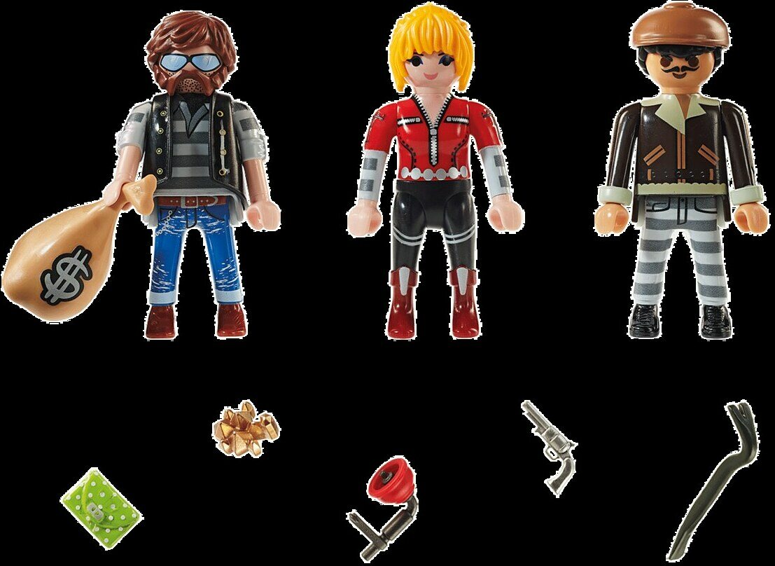 Roistot suunnittelevat salaa seuraavaa ryöstöretkeä. Kolme varasta haluaa murtautua museoon ja ovat jo hankkineet sitä varten sorkkaraudan. Mutta tällainen rosvoretki on harkittava huolellisesti. Leikkikalusetti sisältää kolme PLAYMOBIL-hahmoa, sorkkaraudan, pistoolin, rahakassin ja muita lisävarusteita.
