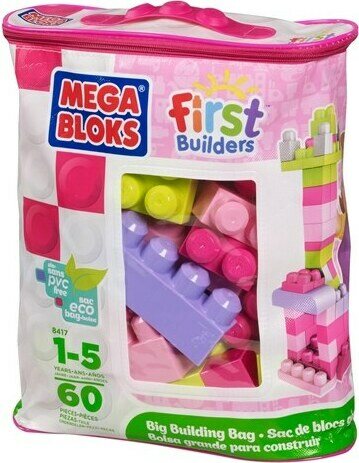 Vetoketjulla suljettava muovinen säilytyspussi. Sisältää 60 pastelliväristä palikkaa. Ikäsuositus +1 vuotiaille.