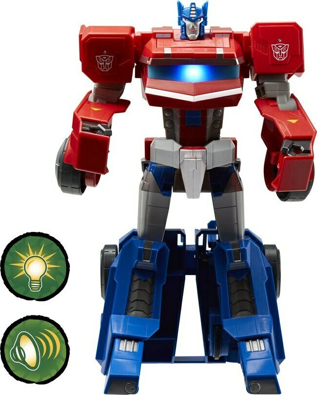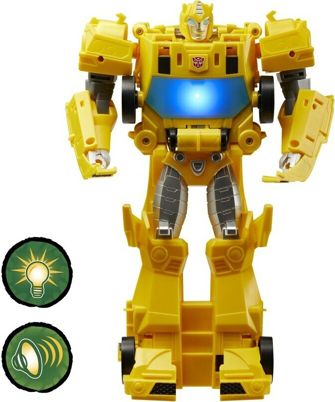 Ajoneuvosta robotiksi muuntautuva 25 cm Transformers-hahmo. Paina ja vieritä ajoneuvoa ja hahmo siirtyy ajoneuvotilasta robottitilaan. Ääni-ja valotoimintoja. Lajitelmassa Bumblebee ja Optimus Prime. Kaikki hahmot myydään erikseen.