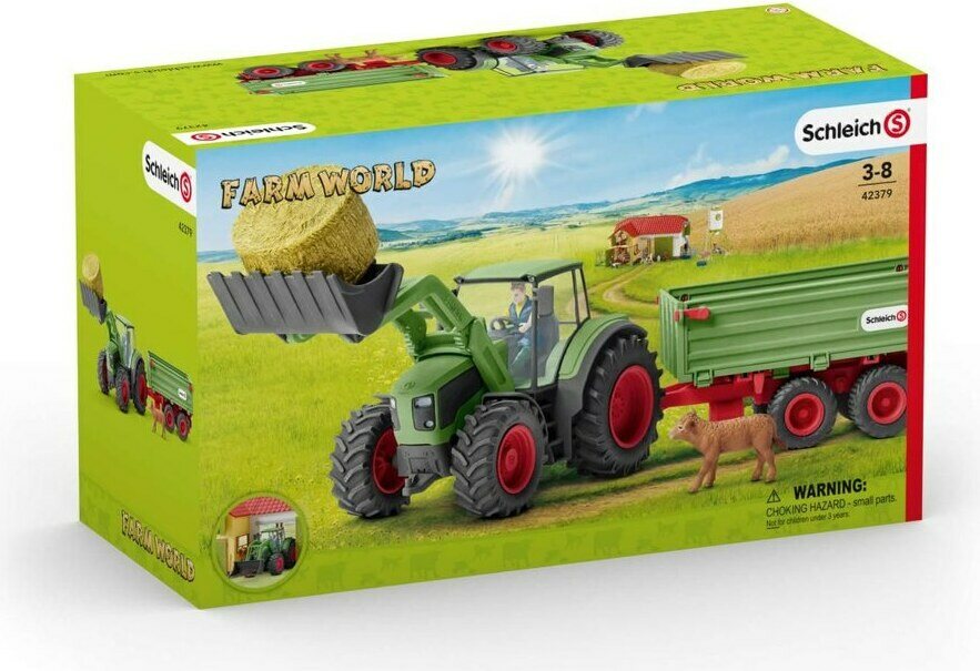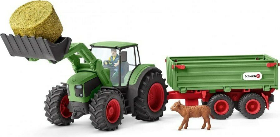 Tämä sarja on täydellinen lisä Schleich-maatilaan, ja se sopii täydellisesti yhteen heinäkuljettimen kanssa. Etukuormaajan avulla heinäpaalit on helppo lastata perävaunuun, jolla ne voidaan kuljettaa maatilalle. Kaikki Schleich-hahmot on muotoiltu yksityiskohtaisesti ja maalattu huolellisesti käsin.